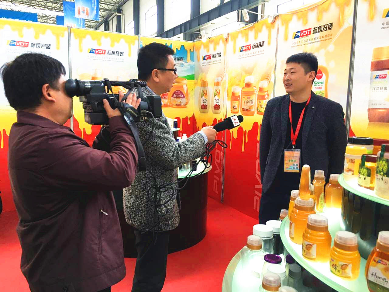 此次会展中标榜容器接受当地电视台采访,我司销售副总毕建波先生就公司发展现状、产品研发理念、工艺控制体系和产品服务体验做了交流分享,他提到,随着国内蜂产品市场的逐步规范,据有关人士指出未来国内本土蜂产品市场发展后劲十分强大,蜂产品已经朝向产品多元化、高端化方向迈进,蜂蜜行业也将迎来了一个快速发展时期。高品质、高标准的内在特性必然对蜂产品的包装要求不断提高,于是我们就紧紧把握了这个趋势,从选材与瓶型设计、制作与推广上市等多方面下功夫,从天然生态的蜂产品中汲取灵感,遵循“人体工学”的制作手法,通过包装还原蜂蜜自身具备的色、香、味和药用、保健价值。近年来,公司洞悉行业前沿,加快材料与技术革新,成功研发出适宜蜂产品包装的各种瓶型,深受市场与消费者好评。同时,我们公司倡导以创新、高质、环保、共赢的理念求发展,加强知识产权保护与精益生产管理,从提升自我管理水准层面为促进蜂产品市场净化改革做了应有的努力。