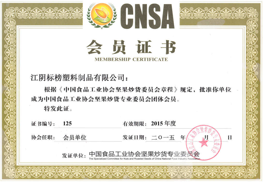 坚果炒货作为传统、时尚的健康型休闲食品,其发展前景十分广阔,此次我司成为协会会员单位,是行业对标榜容器的关注和支持,标榜容器将一如既往地秉承技术为先、品质为先的理念,充分利用自身有利资源优势,同协会一起为推动我国食品工业的发展作出更大、更新的贡献!